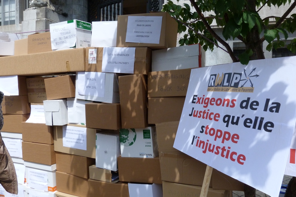 Le Réseau Wallon de Lutte contre la Pauvreté fait partie de la Plateforme Justice pour Tous. Cette plateforme rassemble des acteurs du secteur judiciaire et des associations qui sont en lien direct ou pas avec la justice. Nous sommes très inquiets sur les positions du Ministre Geens sur la réforme de la Justice. Nous serons présents à la manifestation que la Plateforme organise le mercredi 24 juin à Bruxelles de 12 à 14H avec une ou des boites en carton ;-) voir ci-dessous.
