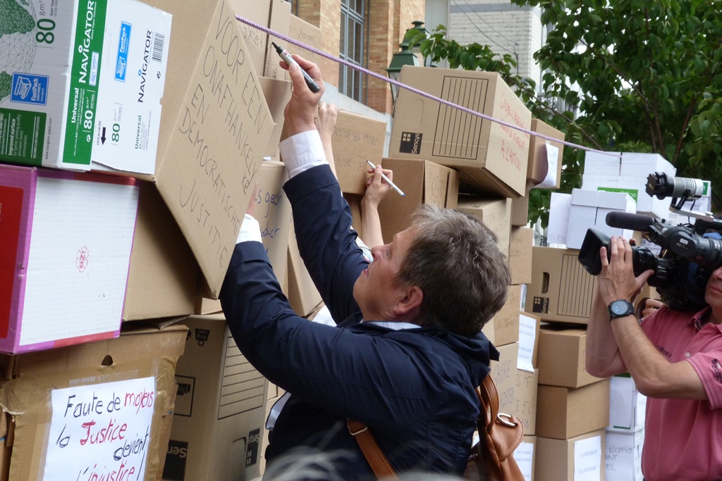 Avec l’action « SOS Accès à la justice », la plateforme « Justice pour Tous » veut attirer l’attention sur le fait que c'est le citoyen ordinaire qui payera les conséquences de ce plan. La société civile s'associe aux acteurs de la justice, qui protestent aussi contre le plan du gouvernement.